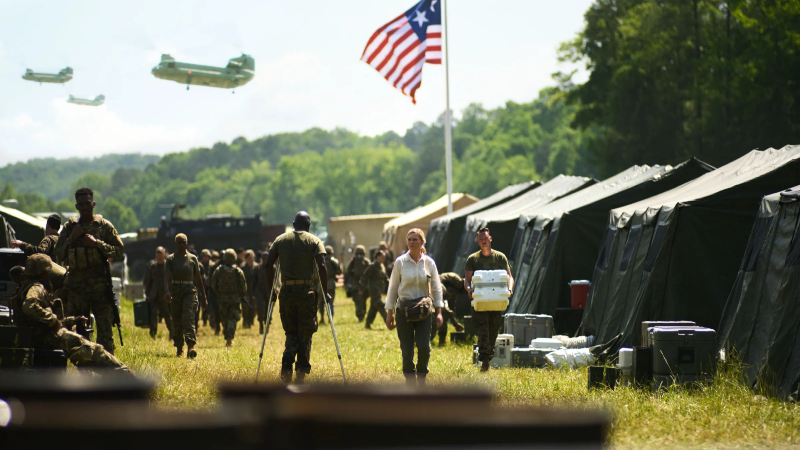 They stop at Charlottesville, where the Western Forces of Texas and California are preparing for the final assault and takeover of the White House. It is never clear why Garland, who also penned the film script, chose the sleepy Virginia town for such momentous congregation. This is where the violent white supremacist rallies of 2017 took place (then-president Trump described the marchers as “very fine people”). I have no idea whether the director/scribe is trying to make some sort of political statement. Is he trying to say that the rebels are as dangerous as the racist far-right? Is he suggesting that a self-serving president such Trump or the nameless one here depicted could herald the demise of the United States? Your guess is as good as mine.