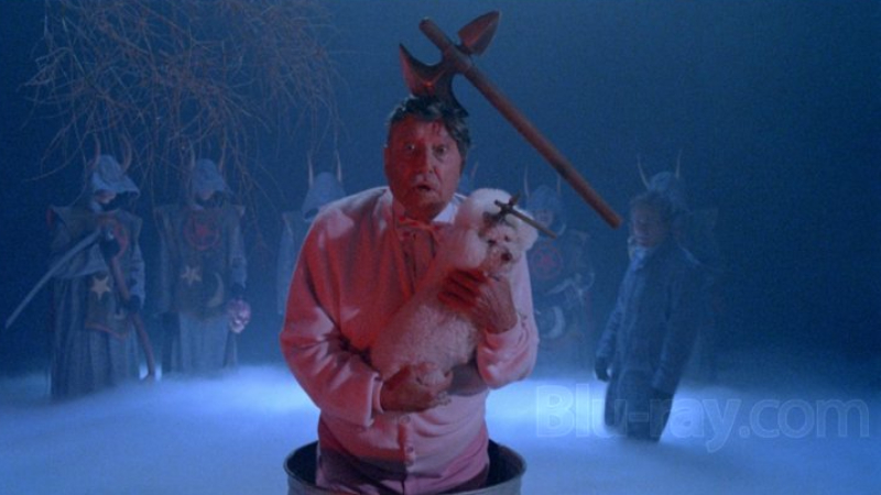 The opening scenes set the stage for a playful tonal mix. The back and forth between absurdist comedy, with a satirical edge about the suburbs, and horror, pivots to a fun Ennio Morricone-like score and the march of the western heroes in one scene. Then there’s the inclusion of The Exorcist and The Texas Chainsaw Massacre 2, before Ray is seen watching Mister Rogers’ Neighbourhood (Rogers, 1968-2001). The ‘Burbs also reimagines the opening of David Lynch’s romantic take on suburbia in Blue Velvet (1986), but in reverse, expressing the pretence of normality instead of revelations about the dark social underbelly. In its own unique way, The ‘Burbs is Dante’s personal nostalgic celebration or love letter to storytelling and also the meeting point between light and darkness.